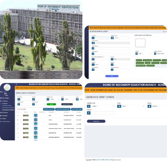 enrollments, and result management through a secure, user friendly platform.